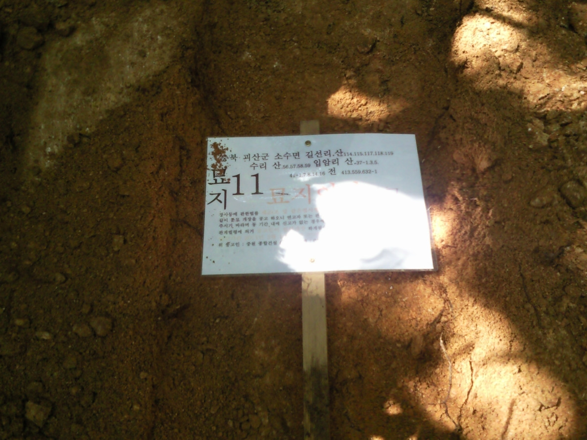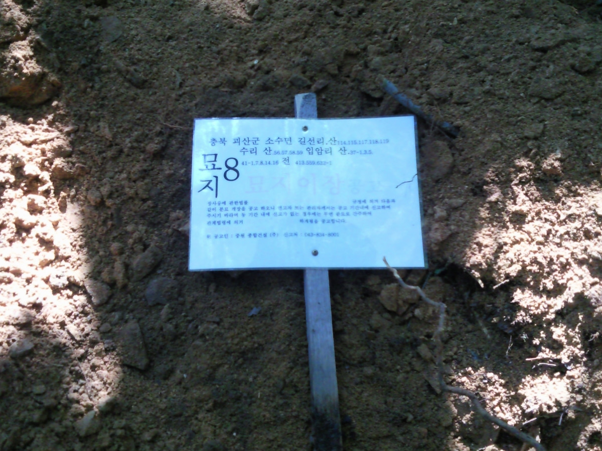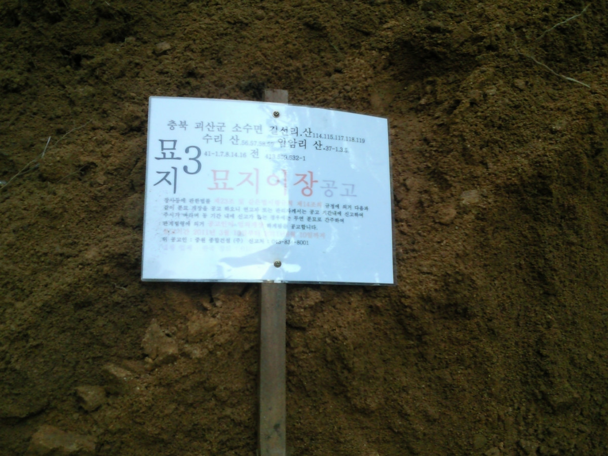 충청북도 괴산군 소수면 무연고 13기 공고후 개장. 화장후 10년 납골안치..