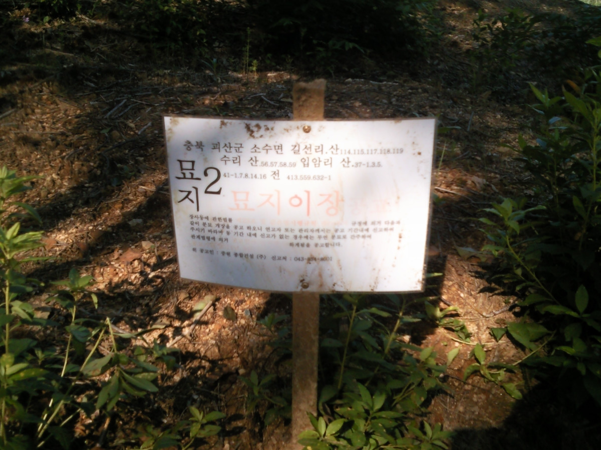 충청북도 괴산군 소수면 무연고 13기 공고후 개장. 화장후 10년 납골안치..