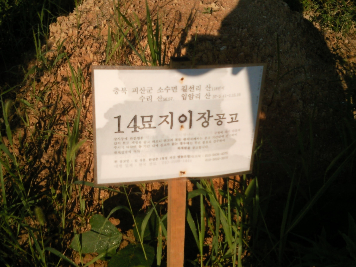 충청북도 괴산군 소수면 무연고 13기 공고후 개장. 화장후 10년 납골안치..