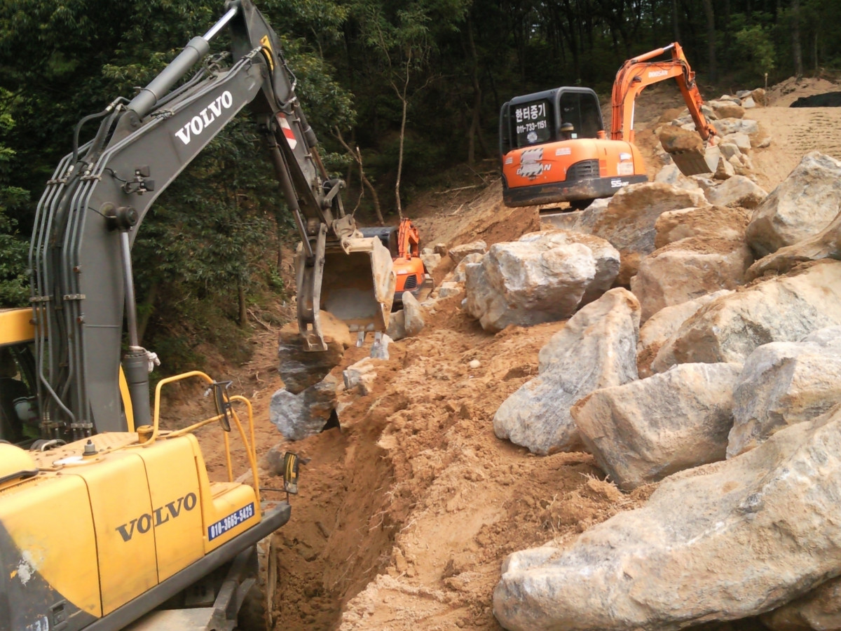 용인 백암 조경석 축대.토목공사.사초공사.원형 둘래석 사군자 3벌.잔디공사.