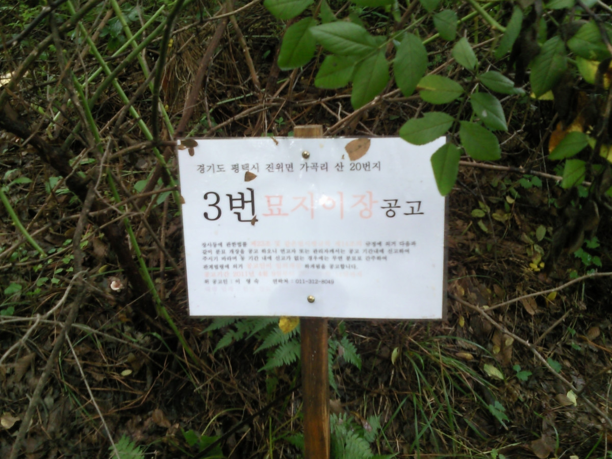 경기도 평택시 무연고 3기 공고후 개장. 화장후 10년 납골안치..