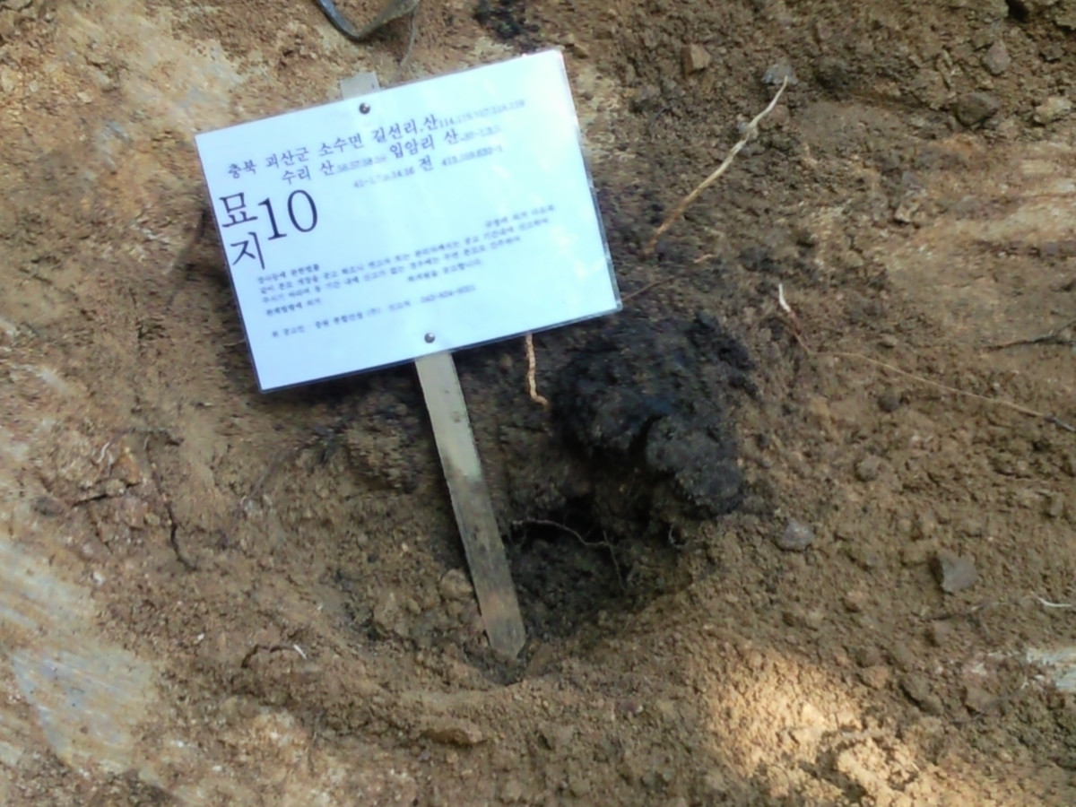 충청북도 괴산군 소수면 무연고 13기 공고후 개장. 화장후 10년 납골안치..